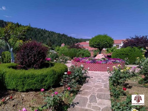 Αμέσως μετά, στον ολάνθιστο προαύλιο χώρο της Μονής, ο Σεβασμιώτατος Μητροπολίτης μας τέλεσε Τρισάγιο στον τάφο της αείμνηστης Ηγουμένης της Μονής, Παρθενίας Γιόβα.