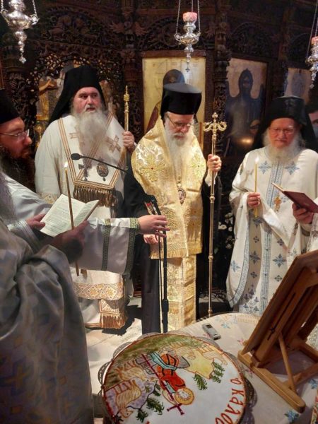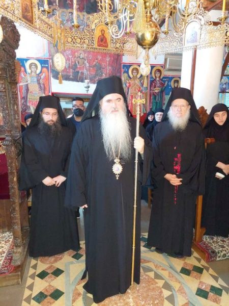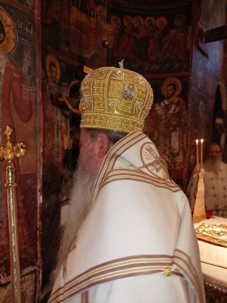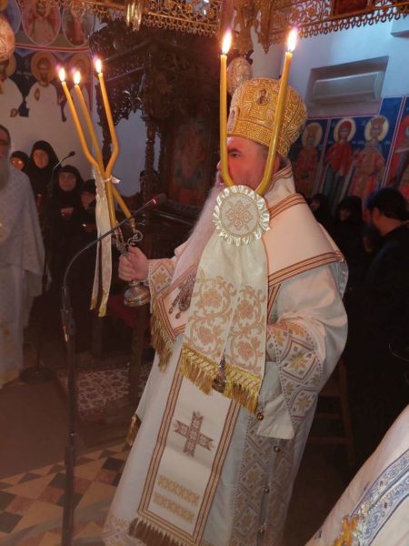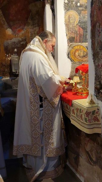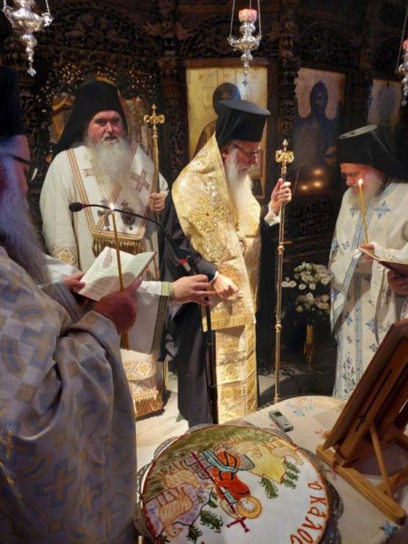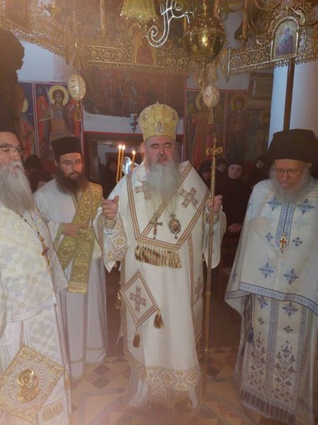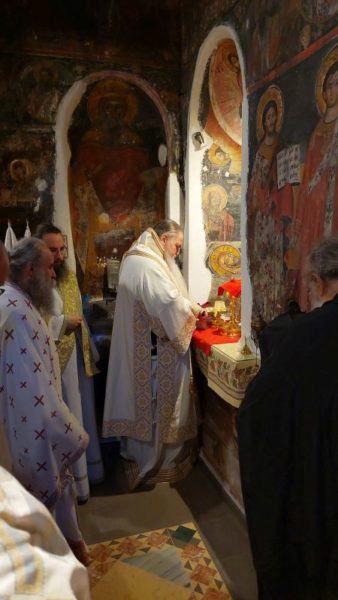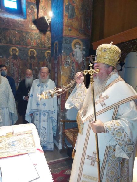 Κατά την Ακολουθία του Όρθρου χοροστάτησε ο Σεβασμιώτατος Μητροπολίτης Νέας Κρήνης και Καλαμαριάς κ. Ιουστίνος, ο οποίος και προεξήρχε της αρχιερατικής Θείας Λειτουργίας κατά την οποία συνιερούργησαν αδελφοί της Ιεράς Μονής Αγίου Βησσαρίωνος Δουσίκου και πολλοί ιερείς των γύρω περιοχών με την παρουσία πλήθους πιστών, που έφτασαν στην Ιερά Μονή για να συμπροσευχηθούν για την μακαρία ανάπαυση της ψυχής του μακαριστού Καθηγουμένου, ενώ στο Ιερό Βήμα συμπροσευχόμενος παρέστη ο Σεβασμιώτατος Μητροπολίτης Αυλώνος κ. Χρυσόστομος.