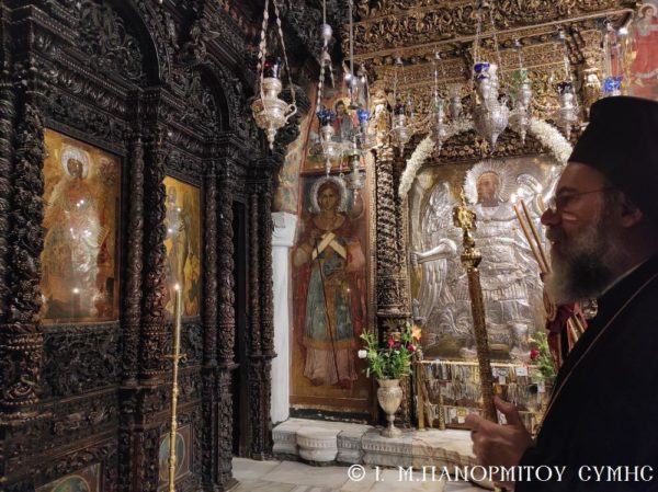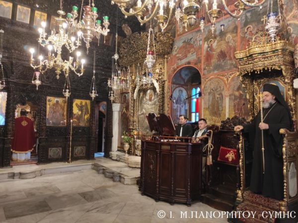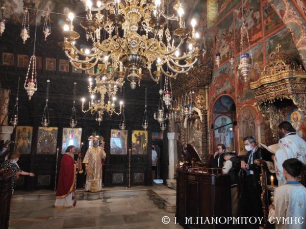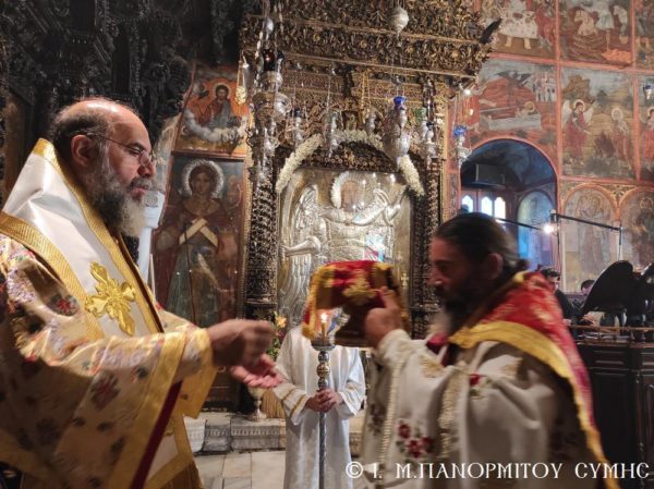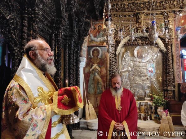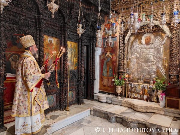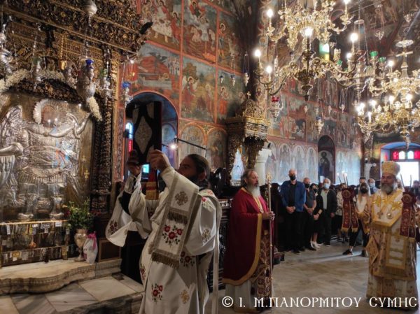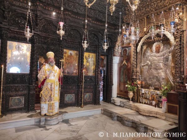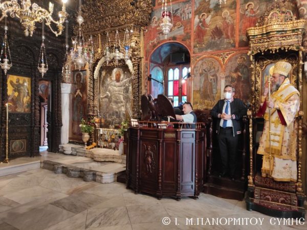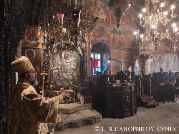 Το πρωί της Γ΄ Κυριακής Λουκά, 10 Οκτωβρίου 2021, ο Σεβασμιώτατος Μητροπολίτης Σύμης, Τήλου, Χάλκης και Καστελλορίζου κ. Χρυσόστομος, σύμφωνα με το μηνιαίο του πρόγραμμα χοροστάτησε στον Όρθρο και τέλεσε την Θεία Λειτουργία στο Καθολικό της Ιεράς Μονής Ταξιάρχου Μιχαήλ του Πανορμίτου Σύμης, με συλλειτουργούς του τον Καθηγούμενο, Αρχιμανδρίτη του Οικουμενικού Θρόνου π. Αντώνιο Πατρό και τον Διάκονο π. Γεώργιο Κακακιό. Το ιερό αναλόγιο διηκόνησε ο κ. Μερκούριος Γιανναράς, Αναγνώστης και Πρωτοψάλτης της Ι. Μονής.