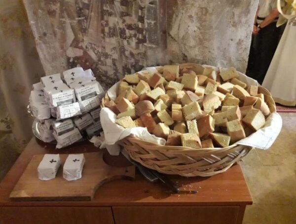 Αμέσως μετά την Απόλυση οι ιερομόναχοι, με άψογο «οικοδεσπότη» τον Καθηγούμενο της Ιεράς Μονής, έχοντας στο πλευρό τους εθελοντές και εθελόντριες, προσέφεραν καφέ, αναψυκτικά και γλυκίσματα στους προσκυνητές, κάτω από τα δροσερά πλατάνια στον προαύλιο χώρο τού μοναστηριού, ενώ το μεσημέρι το Ηγουμενοσυμβούλιο πα-ρέθεσε γεύμα, στο οποίο παρακάθισαν ο Σεβασμιώτατος Μητροπολίτης και οι προσκεκλημένοι.