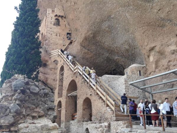 Και συνέχισε: «Για να έρθετε σήμερα εδώ, σε αυτό το απόμακρο σημείο, σε αυτό το ασκητήριο, δεν υπάρχει κάτι υλικό που σας κάλεσε. Απλώς, ήρθατε σε έναν ιερό τόπο, που είναι κοπιαστικό για να ανεβεί κάποιος. Τι ήταν άραγε αυτό που σας έκανε να ανεβείτε, μικροί και μεγάλοι, εδώ; Ήταν μια γεύση εσωτερική που σας έδωσε τη δύναμη να φθάσετε εδώ. Ο Χριστός μίλησε στην καρδιά σας και σας έφερε εδώ πάνω για να μας πει ότι αυτή η μυστική σχέση μαζί Του δεν έχει τέρμα».