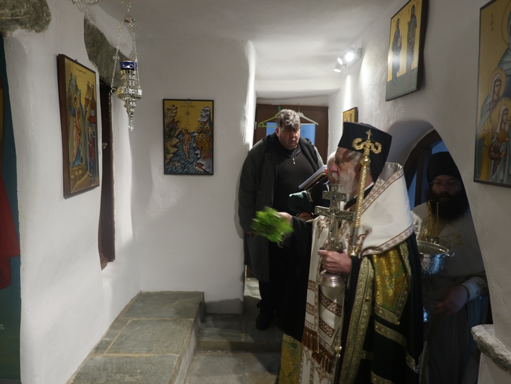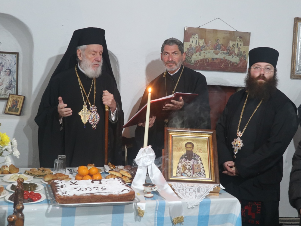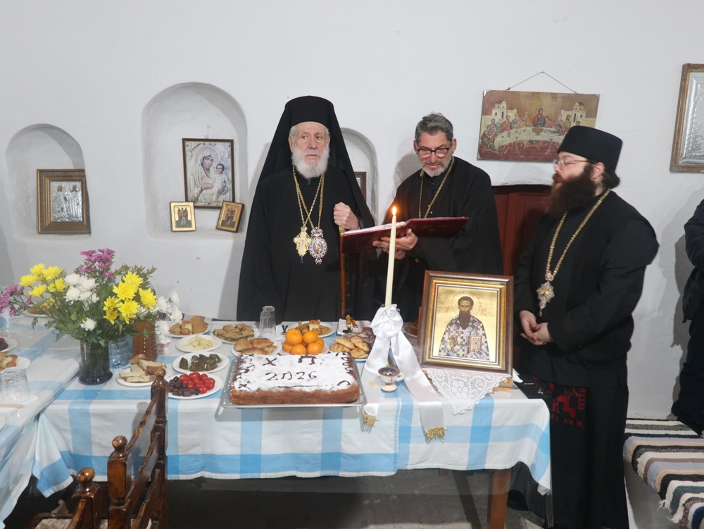 Ευχαρίστησε και συνεχάρη τον Ηγούμενο Αρχιμ. Ευδόκιμο για την ανύστακτη μέριμνά του προς την Μονή και το κοπιώδες έργο του για την ανακαίνιση και εξωραϊσμό της, και ευχήθηκε στο πολυπληθές εκκλησίασμα για το αρξάμενο νέο έτος!
