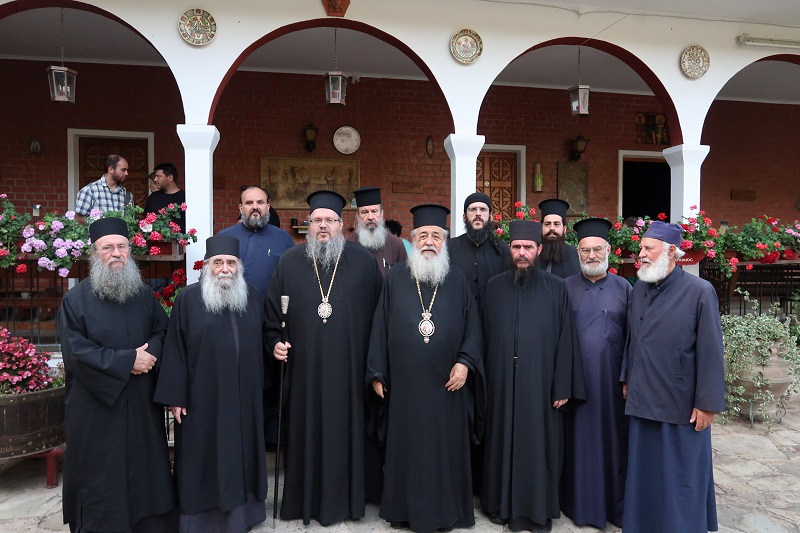 Τον Σεβασμιώτατο και τους εκατό Ιερείς και Προσκυνητές υπεδέχθη εις τα προπύλαια της Ιεράς Μονής ο Σεβασμιώτατος Μητροπολίτης Φθιώτιδος κ. Νικόλαος και ο Καθηγούμενος της Μονής Πανοσιολ. Αρχιμ. π. Γερμανός Γιαντσίδης με τους Πατέρες της Αδελφότητος.