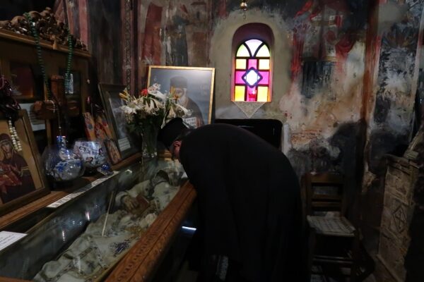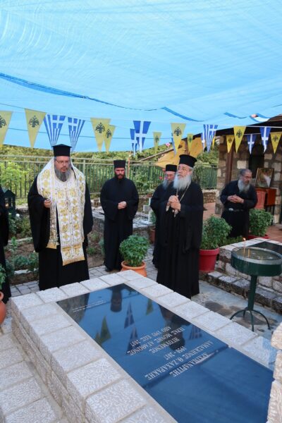 Στην συνέχεια οι δύο Αρχιερείς με τους Πατέρες μετέβησαν στο Κοιμητήριο της Μονής, όπου ο κ. Ιερώνυμος ετέλεσε τρισάγιο επί του τάφου του μακαριστού Καθηγουμένου π. Δαμασκηνού, επί τη συμπληρώσει δύο ετών από την προς Κύριον αιφνίδιαν εκδημίαν του.