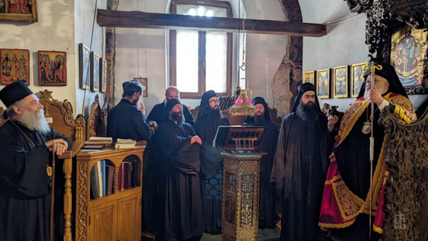 Οι Σεβασμιώτατοι μετά το συλλείτουργό τους στην πόλη της Αχρίδος, στην Αγία Σοφία, με τον Μητροπολίτη Δεβρών και Κιτσέβου κ. Τιμόθεο, ευδόκησαν να έλθουν στην Ιερά μας Μονή του Τιμίου Προδρόμου του Κυρίου, όπου έγιναν δεκτοί από τον Ηγούμενο, Επίσκοπο Αντανίας κ. Παρθένιο, και την αδελφότητα. Η επίσκεψη των δύο αρχιερέων, εκ των οποίων ο Μητροπολίτης Διδυμοτείχου για πρώτη φορά, έφερε μεγάλη χαρά στο μοναστήρι, όπου με τις επίσημες κωδωνοκρουσίες των καμπανών, τα θυμιατήρια και η ψαλμωδία έφεραν πραγματική χαρά Ευαγγελισμού, έτσι που οι καρδιές όλων μας γέμισαν ιερό τρόμο και ευγνωμοσύνη.