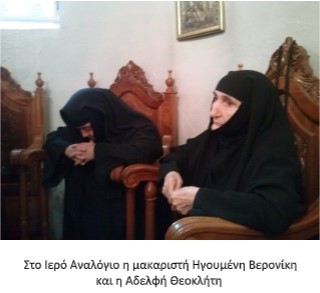 Την Κυριακή, 12 Ιουλίου 2015, η Εκκλησία μας γιόρτασε τη μνήμη της Αγίας Βερονίκης της αιμορροούσας. Μετά τη Θεία Λειτουργία που τελέστηκε στο Μοναστήρι, η Ηγουμένη και η συνοδεία της πρόσφεραν καφέ και γλυκίσματα στους προσκυνητές που πήγαν να της ευχηθούν για την ονομαστική της εορτή, στο Αρχονταρίκι της Μονής.