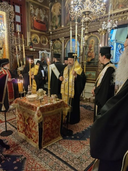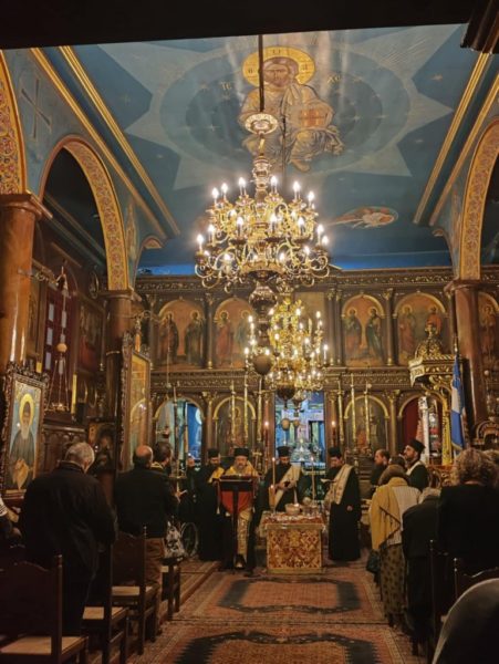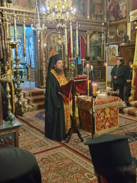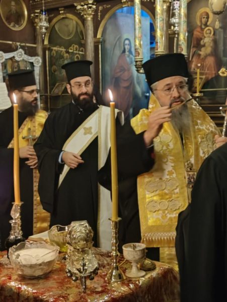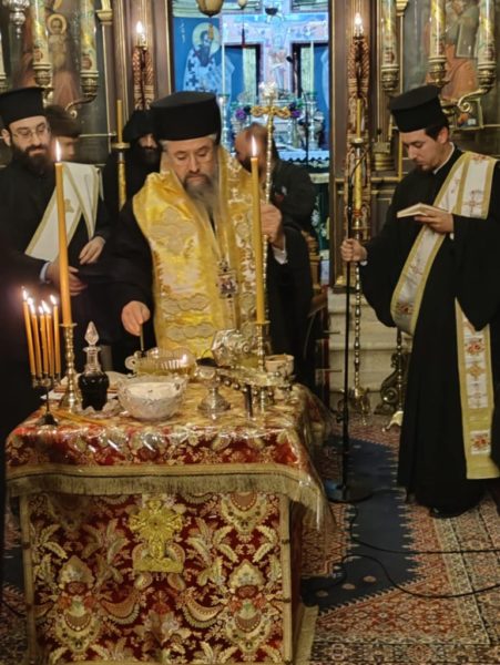 Μετά το πέρας του Ιερού Μυστηρίου ο Σεβασμιώτατος Μητροπολίτης έχρισε τον κλήρο και τους ευσεβείς προσκυνητές ευχόμενος όπως αξιωθούν όλοι να εορτάσουν την μεγάλη Δεσποτική εορτή της Εκκλησίας.