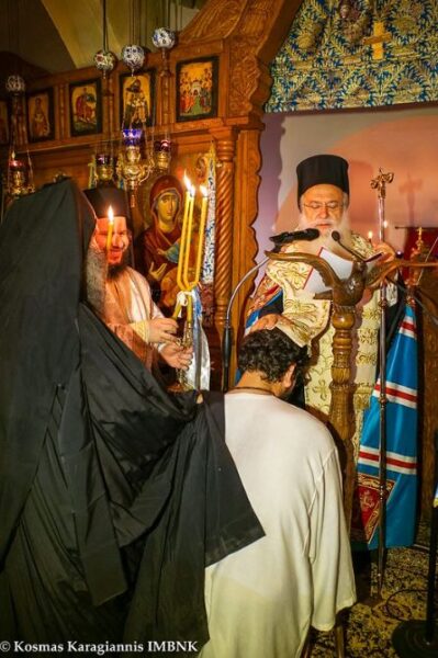 Πριν τον εσπερινό ο Σεβασμιώτατος τέλεσε τρισάγιο στον τάφο του μακαριστού Μοναχού Θεωνά, επί τη συμπληρώση τριών ετών απο της Κοιμήσεως του.