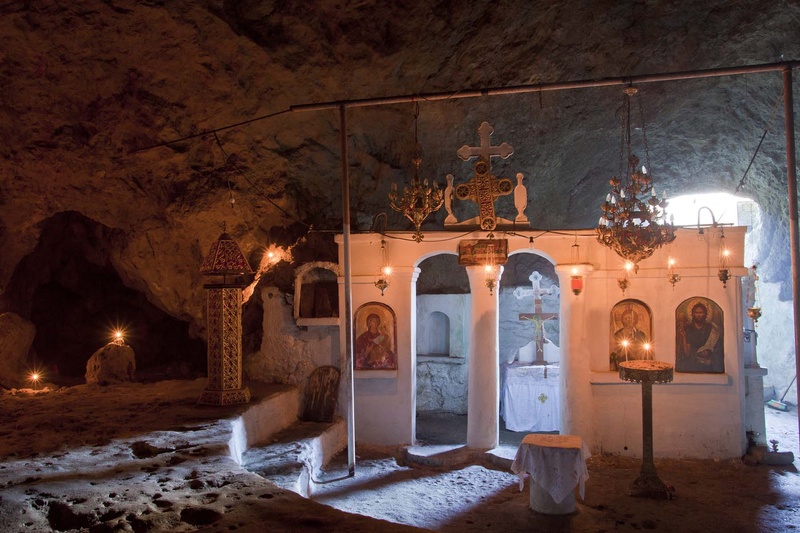 Ο οικισμός της αρχαίας Βρουκούντας, γνωστός για τους λαξευτούς του τάφους του 4ου π.χ. αιώνα, παρέμεινε σε ακμή μέχρι τον 7ο μ.χ. αι. Το φυσικό σπήλαιο του Αγίου Ιωάννη, διαμορφώθηκε ως υπόγεια εκκλησία πάνω στα ερείπια αρχαίου ιερού της Αφροδίτης ή της Αρτέμιδος. Η είσοδος προς το ιερό σπήλαιο γίνεται μέσω πέτρινων σκαλοπατιών που οδηγούν στο εντυπωσιακό εσωτερικό του ναού όπου σώζεται λευκού κονιάματος τέμπλο με 3 παραστάδες. Στον περίβολο ορθώνεται καμπαναριό με χειροκίνητη καμπάνα.