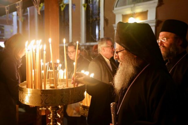 Με ιδιαίτερη λαμπρότητα και με Αγιορείτικη τάξη τελέστηκε ο Πανηγυρικός Εσπερινός κατά το Σάββατο 9 Φεβρουαρίου ε.ε. στο Ιερό Μετόχιο του Αγίου Χαραλάμπους της Ιεράς Μονής Σίμωνος Πέτρας στη Θεσσαλονίκη, χοροστατούντος του Πανοσιολογιωτάτου Καθηγουμένου Ελισαίου Ιερομονάχου. Τον Καθηγούμενο της Μονής πλαισίωσαν Σιμωνοπετρίτες Πατέρες και κληρικοί από την συμπρωτεύουσα.