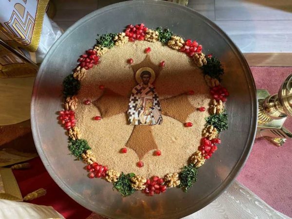 Μετά την ευλόγηση των Κολλύβων προς τιμή του Αγίου Ελευθερίου και της μητέρας του Αγίας Ανθίας ο Σεβασμιώτατος κ. Διονύσιος, απεύθυνε ευχές στην Αδελφότητα της Ι. Μονής και τους προσκυνητές ώστε, με την μεσιτεία του Αγίου Ελευθερίου, να αξιωθούμε οι πάντες να ελευθερωθούμε από τα πάθη μας και τις κακίες μας για ν᾿ απολαύσουμε και ᾿μείς την μακαριότητα της Βασιλείας των Ουρανών, που είναι και ο σκοπός της Χριστιανικής ζωής, αλλά και την εδώ διαβίωση μας, για όσο χρόνο επιτρέπει ο Θεός να ζούμε επί της γης, να την κάνουμε «παράδεισο», αφανίζοντας την δυσωδία των αμαρτιών μας γενόμενοι «Χριστού ευωδία» (Β΄ Κορ. β΄, 15) σύμφωνα και με το όνομα της Αγίας μητέρας του.