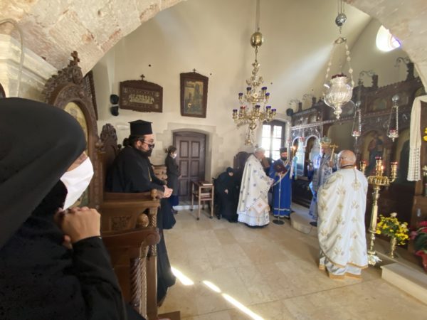 Της Αρχιερατικής Θείας Λειτουργίας προέστει ο Σεβασμιώτατος Ποιμενάρχης Κυδωνίας και Αποκορώνου κ. Δαμασκηνός, συμπροσευχουμένου του Θεοφιλεστάτου Επισκόπου Δορυλαίου και Πρωτοσυγκελλεύοντος της Μητροπόλεως κ. Δαμασκηνού και της Καθηγουμένης της Μονής Γερόντισσας Θεοφόρας μετά της αδελφότητος.