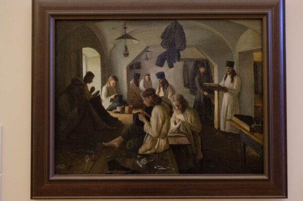 Τα έργα ανήκουν στους πασίγνωστους Ρώσους ζωγράφους Ιβάν Σίσκιν, Αρχίπ Κουίντζι, Αλεξάνδρ Γκινέ και στους σύγχρονους συναδέλφους τους και απεικονίζουν τη άγρια φύση του τοπίου, τα πορτραίτα των μοναχών και την καθημερινή ζωή της Μονής.