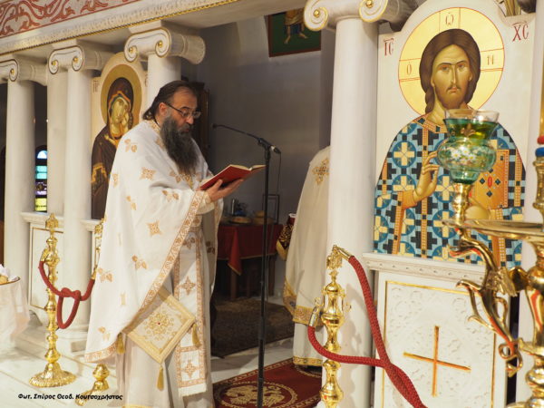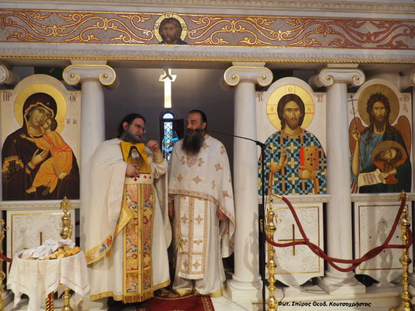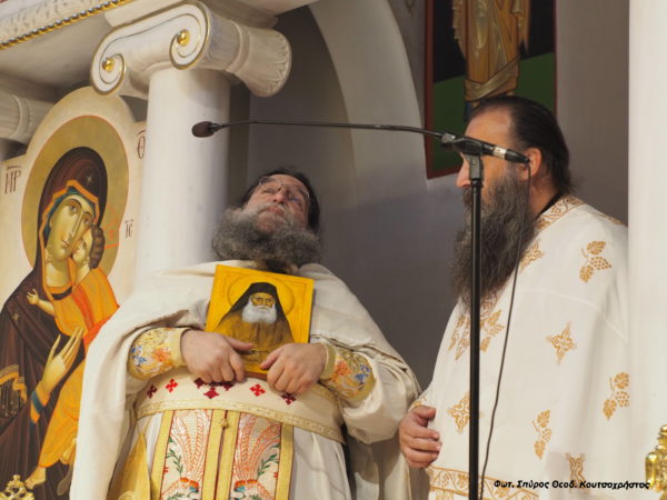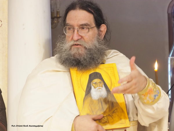 Ο π. Ευάγγελος μετέφερε με την χαρακτηριστική διήγηση του στους πιστούς, πνευματικές εμπειρίες από τον Άγιο Γέροντα, κρατώντας συνεχώς την εικόνα του.