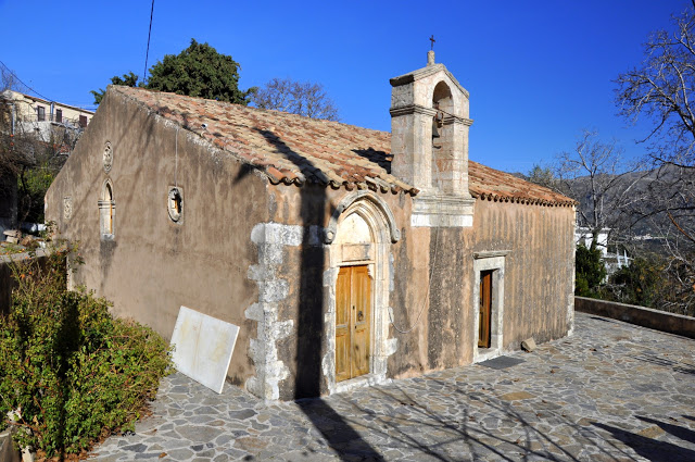 Η αρχική φάση του ναού, κυρίως με βάση τον τοιχογραφικό του διάκοσμο, τοποθετείται στο δεύτερο μισό του 14ου αιώνα. Τότε τοποθετούνται το κεντρικό κλίτος και το βόρειο, το οποίο είναι αφιερωμένο στον Άγιο Γεώργιο. Το νότιο κλίτος, αφιερωμένο στους Αγίους Αποστόλους Πέτρο και Παύλο προστέθηκε αργότερα, γύρω στον 16ο αιώνα, σε μια εποχή που έχει αρχίσει να εκλείπει από την Κρήτη η παράδοση της τοιχογράφησης των ναών. Μεταγενέστερα τοποθετήθηκε και το μικρό μονόλοβο καμπαναριό στη νότια όψη του ναού. Το κεντρικό κλίτος καλύπτεται από οξυκόρυφη καμάρα και άλλα δύο από μισή καμάρα, ενώ επικοινωνούν μεταξύ τους με μεγάλα τοξωτά ανοίγματα.