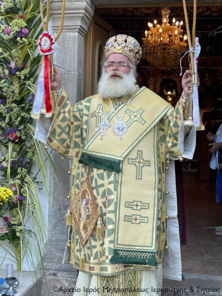 Στην Αρχιερατική Θεία Λειτουργία κατά την πανήγυρη της Ι. Μονής τον Σεβ. Μητροπολίτη κ. Κύριλλο πλαισίωναν οι Αιδεσ/τοι Πρωτ. Στυλιανός Μαθιουδάκης, Συνταξ. Εφημέριος Ενορίας Μαλλών, Πρωτ. Σάββας Λιναδράκης, Εφημέριος Ενορίας Παναγίας Ελεούσης Ιεράπετρας και Αρχιερ. Επίτροπος Β΄ Αρχιερ. περιφέρειας, Οικονόμος π. Αντώνιος Κανάρης, Εφημέριος της Μονής, π. Ελευθέριος Δαργάκης, Εφημέριος Ενορίας Μύρτου και ο Διάκονος π. Τίτος Ματαλλιωτάκης, και παρέστη συμπροσευχόμενος ο Αιδεσιμ. Σκευοφύλακας π. Μιχαήλ Ξυδιανός, Συνταξ. Εφημέριος, ενώ παρέστησαν αρκετοί ευσεβείς χριστιανοί της περιοχής, τηρώντας τα προβλεπόμενα υγειονομικά μέτρα προστασίας από την πανδημία του κορωνοϊού.