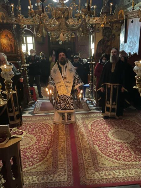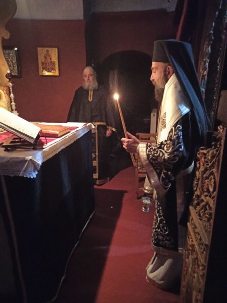 Την εσπερινή Θεία Λειτουργία των Προηγιασμένων Τιμίων Δώρων τέλεσε χθες, εορτή του Αγίου Αλεξίου του ανθρώπου Του Θεού, ο Σεβασμιώτατος Μητροπολίτης Θήρας, Αμοργού και νήσων κ. Αμφιλόχιος στο Καθολικό της Ιεράς Μονής Προφήτου Ηλιού Θήρας, πλαισιούμενος από τον Καθηγούμενο της Ιεράς Μονής, αρχιμανδρίτη Δαμασκηνό Γαβαλά, τον εορτάζοντα αδελφό της Μονής, π. Αλέξιο Ρούσσο και τον ιεροδιάκονο π. Χαράλαμπο Σαλίβερο.