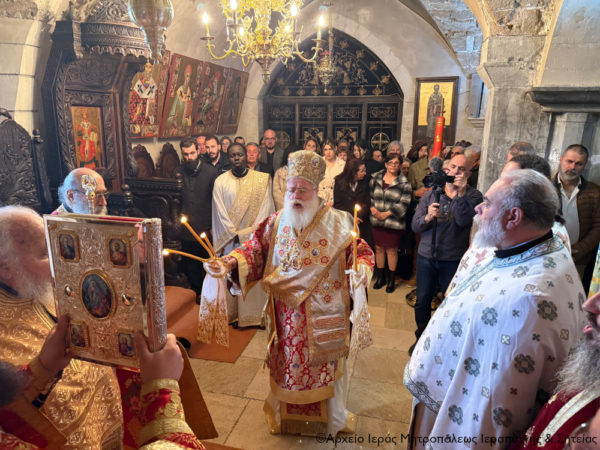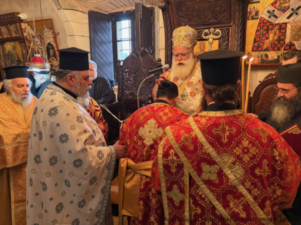 Στην Αρχιερατική Θεία Λειτουργία έλαβαν μέρος ο ο Παν/τος Αρχιμ. Φιλόθεος Σπανουδάκης, Προηγούμενος της Μονής, ο Πανοσιολ. Αρχιμ. π. Πορφύριος Μπικουβαράκης, Διευθυντής της Σχολής Μαθητείας Υποψηφίων Κληρικών (Σ.Μ.Υ.Κ.) Κρήτης, ο Αιδεσιμ. Πρωτ. Γεώργιος Τσικαλάκης, συνταξ. Εφημέριος και εφημερεύων της Ενορίας Έξω Μουλιανών, ο Αιδεσιμολ. Πρωτ. Ιωάννης Μαστοράκης, Υποδιευθυντής της Σχολής Μαθητείας Υποψηφίων Κληρικών Κρήτης, ο Αιδεσιμ. Πρωτ. Νικόλαος Παθιάκης, Εφημέριος της Ενορίας του Ι. Καθεδρικού Ναού Αγίας Αικατερίνης Σητείας, ο Αιδεσιμ. Οικονόμος π. Νικόλαος Σαββιδάκης, Εφημέριος της Ενορίας Αχλαδίων, και οι Διάκονοι Θεμιστοκλής Μπεϊνάς και Στέφανος Ογιούπ, κληρικός του Πατριαρχείου Αλεξανδρείας και σπουδαστής της Σ.Μ.Υ.Κ. Κρήτης, ενώ ο Πανοσιολ. Ηγούμενος της Ι. Μονής Τοπλού και Πρωτοσύγκελος της Ι. Μητροπόλεως Αρχιμ. Αμβρόσιος Σκαρβέλης εκτελούσε χρέη τελετάρχη.