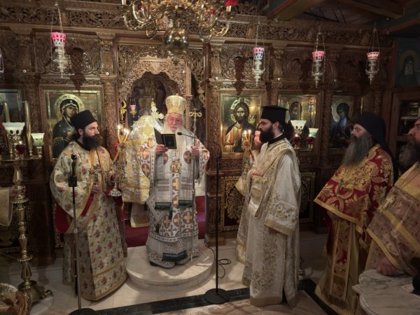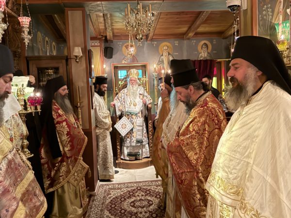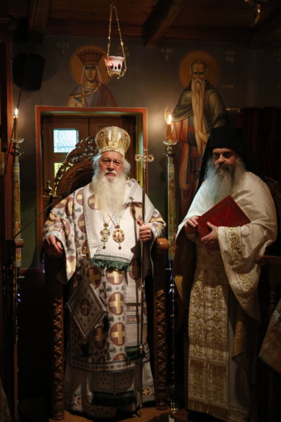 Ο Σεβασμιώτατος στην ομιλία του αναφέρθηκε στα τρία γεγονότα τα οποία εορτάζουμε, την ανάμνηση των Εγκαινίων του Καθολικού, την Σύναξη της Παναγίας της Ελεούσας που τιμά η Μονή μαζί με την ανάμνηση, αλλά και την χειροτονία του νέου Διακόνου.