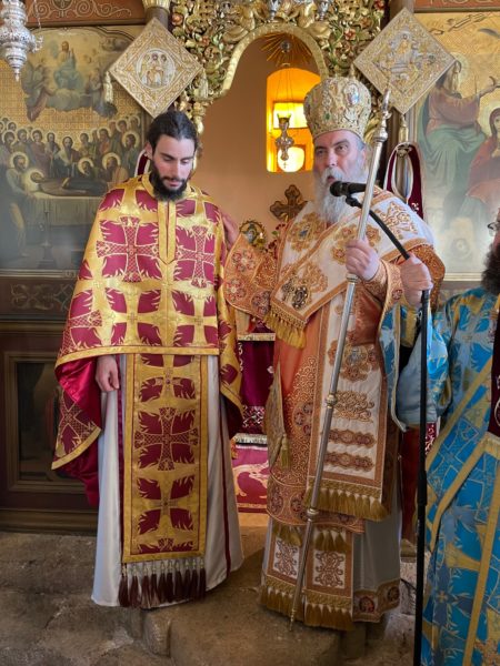 Ο Σεβασμιώτατος με λόγους πατρικούς, καλωσόρισε εις την χορεία των Κληρικών της τοπικής Εκκλησίας τον νεοχειροτονηθέντα, δανειζόμενος τους λόγους του Αγ. Συμεών του Νέου Θεολόγου, το όνομα του οποίου φέρει ο νεοχειροτονηθείς, μιλώντας δια το πώς πρέπει να είναι ο κληρικός.