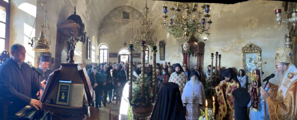 Ο Καθηγούμενος της Ιεράς Μονής και Πρωτοσύγκελλος της Ιεράς Μητροπόλεως, Παν. Αρχ. π. Αγαθάγγελος, εξέφρασε ευχαριστίες και ευγνωμοσύνη, εκ μέρους της Αδελφότητας, προς τον Σεβασμιώτατο Ποιμενάρχη κ. Αμφιλόχιο, καλωσορίζοντας όλους τους παρισταμένους. Κληρικοί της Ιεράς Μητροπόλεως, Μοναστικές Αδελφότητες και πλήθος κόσμου κατέκλυσαν το Καθολικό της Ιεράς Μονής και τους προαύλιους χώρους, αναφωνώντας το ΑΞΙΟΣ. Ακολούθησε πλούσια φιλοξενία δι όλους και Μοναστηριακή τράπεζα δια τους προσκεκλημένους, μεταξύ των οποίων ο Δήμαρχος Κισάμου κ. Γεώργιος Μυλωνάκης, Περιφερειακοί και Δημοτικοί Σύμβουλοι, εκπρόσωποι τοπικών Αρχών και Φορέων, η κατά σάρκα οικογένεια του π. Συμεών και πρόσωπα εγγύς της Μονής.