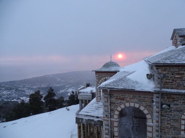 Χιονισμένη η Μονή Ταξιαρχών Πηλίου (ΦΩΤΟ)