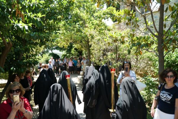 Ο Σεβασμιώτατος Μητροπολίτης Τρίκκης και Σταγών κ. Χρυσόστομος λίγο πριν την αναχώρηση του Ιερού Λειψάνου για την Πάτρα το κόμισε στην Ιερά Μονή για να προσκυνήσουν και λάβουν την ευλογία του Αγίου οι αδελφές, καθώς και ο Πνευματικός της Μονής, Καθηγούμενος της Ιεράς Μονής Αγίου Βησσαρίωνος Δουσίκου Γέροντας Ιγνάτιος.