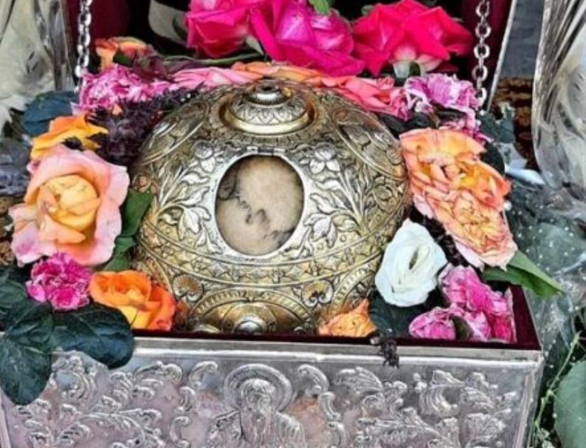 Το ιερό λείψανο προσεκόμισε ο Άγιος Καθηγούμενος της Ιεράς Μονής του Οσίου Δαβίδ Γέροντος Ευβοίας, πανοσιολογιώτατος Αρχιμανδρίτης κ. Γαβριήλ, κατόπιν αδείας και ευλογίας του Σεβασμιωτάτου Μητροπολίτου Χαλκίδος κ. Χρυσόστομου.