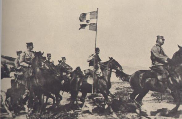 Νά, έρχονται! Νά, κατηφορίζουν από τα γύρω υψώματα φωνάζουν οι άνδρες και έβλεπαν προς τις πλαγιές, όπου σήμερα το ναΰδριο του Προφήτη Ηλία. Οι μεγάλοι φιλιούνται, αγκαλιάζονται – Χριστός Ανέστη! Ήλθε το Ελληνικό! Και νά σε λίγο στρατός συνταγμένος, κουρασμένος, με τους γυλιούς στην πλάτη και τα όπλα κρεμασμένα στους ώμους, μπαίνει στην πλατεία από το δρόμο των στρατώνων, με επικεφαλής έναν καβαλάρη αξιωματικό, τον ίλαρχο Πέτρο Μάνο, όπως μάθαμε αργότερα.