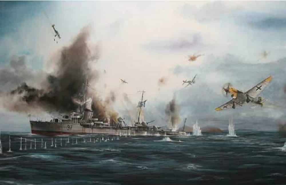 Το απόγευμα της 22ας Απριλίου του 1941, ενώ το αντιτορπιλικό βρισκόταν κοντά στη νησίδα Λαγούσα ένα σμήνος από γερμανικά αεροσκάφη ξεπρόβαλε απειλητικά στον ορίζοντα. Η ξαφνική επίθεση ήταν αφάνταστα τρομακτική.