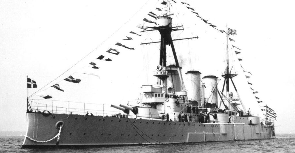Τα πλήθη έχουν συγκεντρωθεί και πραγματικά εκστασιάζονται από την όψη του πολεμικού πλοίου που μετουσιώνει τις τεράστιες επιτυχίες στους Βαλκανικούς Πολέμους και στις επιχειρήσεις του Πρώτου Παγκοσμίου Πολέμου.