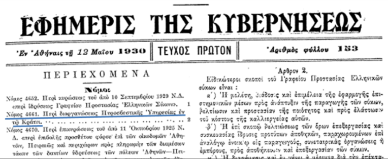 Στις 12 Μαΐου 1930 δημοσιεύτηκε ο Νόμος 4661 «περί διοργανώσεως Πυροσβεστικού Σώματος». Σύμφωνα με αυτόν, ιδρύεται το Πυροσβεστικό Σώμα ανεξάρτητο με δικούς του νόμους, με πλήρη αυτοδιοίκηση σε μορφή Νομικού Προσώπου Δημοσίου Δικαίου και υπαγωγή στο Υπουργείο των Εσωτερικών.