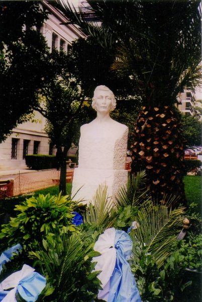 Στεφανωμένη με την πορφυρή αλουργίδα της ήρωος του έθνους, που θα της χαρίσει την ηθική αθανασία, στην μακραίωνη ιστορική πορεία του λαού μας. Τη γεμάτη απο τα λαμπρά ηθικά μας καταπιστεύματα που γονιμοποίησαν τον παγκόσμιο πολιτισμό, αλλά και διάστικτη συνάμα απο το αίμα των ηρωϊκών μαρτύρων μας. Όλοι οι έλληνες με κάθε ευκαιρία μέσα απο τα μύχια της ψυχής μας, απευθύνουμε ένα πελώριο ευχαριστώ στην μεγάλη ελληνίδα, που με την μαρτυρική της θυσία μας δίδαξε «πως οι σκλάβοι γίνονται λεύτεροι».