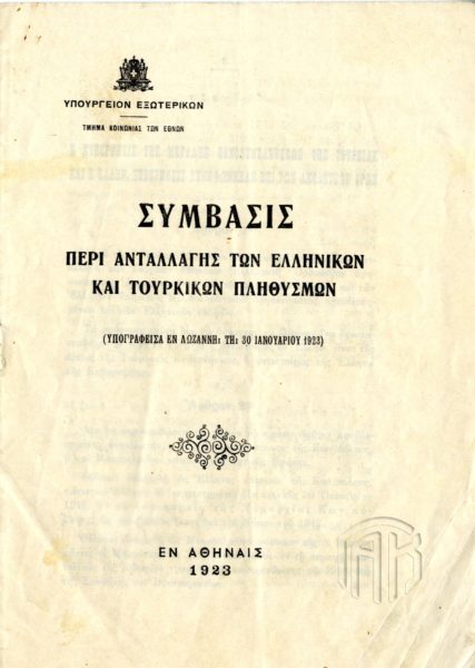 Στις 30 Ιανουαρίου 1923 υπογράφηκε στη Λωζάννη η Σύμβαση περί ανταλλαγής των ελληνικών και τουρκικών πληθυσμών, έξι μήνες νωρίτερα από την υπογραφή της Συνθήκης Ειρήνης, που υπογράφηκε στις 24 Ιουλίου του ίδιου έτους.