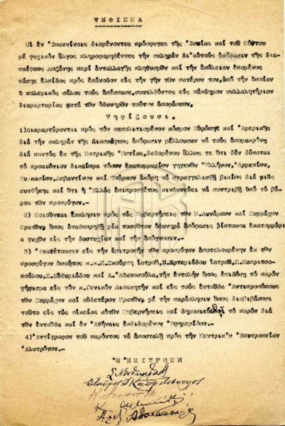 Ψήφισμα διαμαρτυρίας των Μικρασιατών και Ποντίων προσφύγων των Ιωαννίνων για την απόφαση υποχρεωτικής ανταλλαγής πληθυσμών στη Λωζάννη