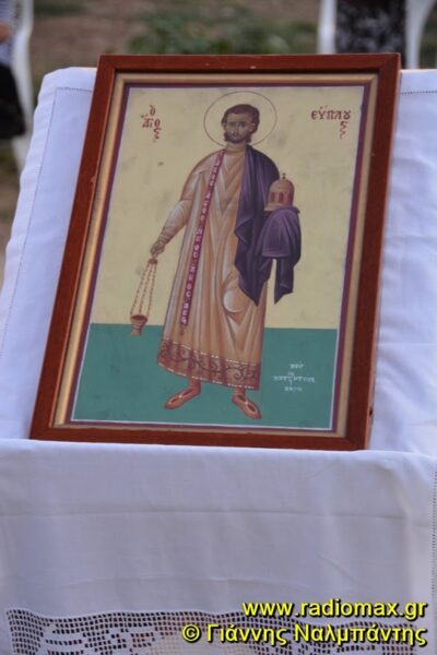 Σήμερα το πρωί επί τη εορτή του Αγίου τελέστηκε Πανηγυρική Θεία Λειτουργία στον Μητροπολιτικό Ναό του Αγίου Νικολάου κατά την οποία οι πιστοί είχαν την ευλογία να προσκυνήσουν τεμάχιο εκ των ιερών λειψάνων του Αγίου Εύπλου, που θα μείνει καθ’ όλη τη διάρκεια της ημέρας εκεί.