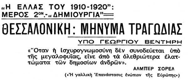 Τον Ιανουάριο 1931, το «ΕΛΕΥΘΕΡΟΝ ΒΗΜΑ» δημοσιεύει αποσπάσματα του σπουδαίου αυτού έργου.
