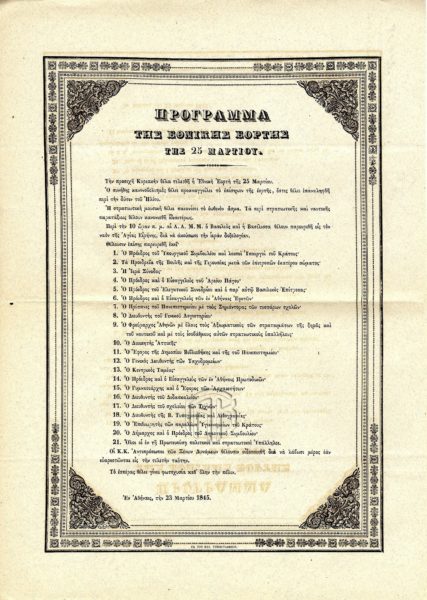 Πρόγραμμα της Εθνικής Εορτής της 25ης Μαρτίου του έτους 1845