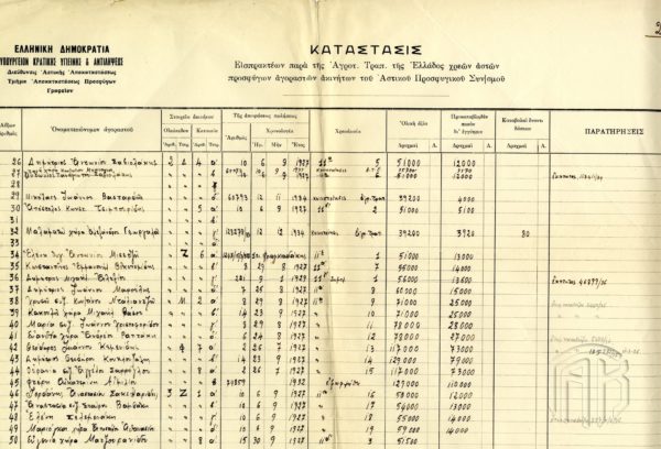 Κατάσταση εισπρακτέων από την Αγροτική Τράπεζα της Ελλάδος χρεών αστών προσφύγων αγοραστών κατοικιών του αστικού προσφυγικού συνοικισμού Νέας Φιλαδέλφειας (1936)