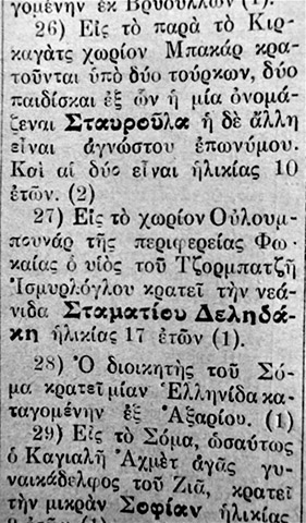Στις στήλες της εφημερίδας Παμπροσφυγική, το 1926, αναφέρονται κάποιες πληροφορίες για πρόσωπα που κρατούσαν Τούρκοι.