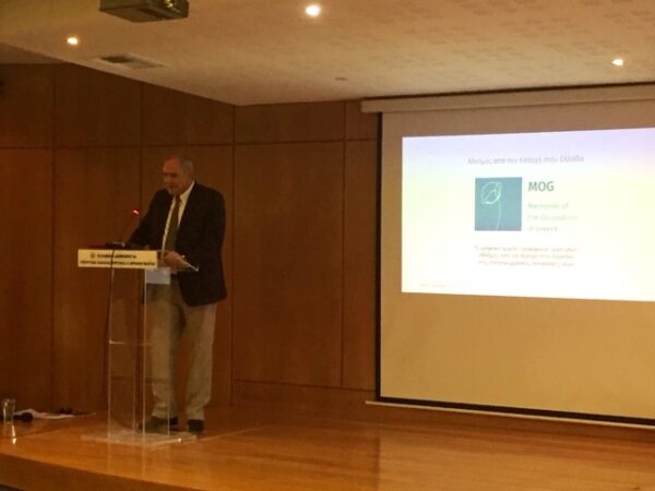 Ο Υφυπουργός Παιδείας, στον χαιρετισμό του τόνισε, μεταξύ άλλων, ότι «η δημιουργία του ψηφιακού αρχείου προφορικών μαρτυριών «Μνήμες από την Κατοχή στην Ελλάδα» αποδεικνύει ότι ένα σπουδαίο έργο έχει συντελεστεί: η συλλογή και η αρχειοθέτηση, με οπτικοακουστικά μέσα, μαρτυριών ανθρώπων που έζησαν τη γερμανική Κατοχή. Η καταγραφή της ατομικής μνήμης με αυτόν τον τρόπο, όχι μόνο διασώζεται, αλλά μετασχηματίζεται και γίνεται μέρος της συλλογικής μας μνήμης. Το ψηφιακό αυτό αρχείο εξυπηρετεί εκπαιδευτικούς και παιδευτικούς σκοπούς και αποτελεί μια πολύτιμη ιστορική πηγή, ένα σοβαρό ερευνητικό εργαλείο».