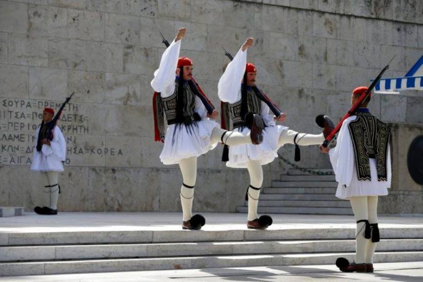 Τον θερινό χακί «ντουλαμά» – Στολή Βαλκανικών Πολέμων. Φέρεται καθημερινά από τους Εύζωνες κατά τη θερινή περίοδο.
