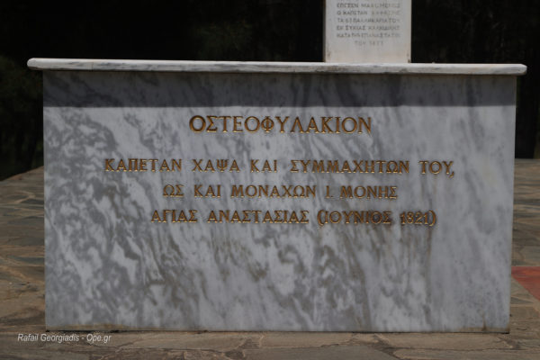 Σήμερα εις ανάμνηση αυτής της φονικής μάχης έχει στηθεί περικαλλές και μεγαλόπρεπο το μνημείο στο τόπο της θυσίας, κάτω από το μοναστήρι της Αγίας Αναστασίας, κατά πώς ταιριάζει στους γενναίους. Μνημόσυνο και απλός ο εορτασμός με πανηγυρικό και κατάθεση στεφανιών κάθε χρόνο τη δεύτερη Κυριακή του Ιουνίου, με γενικό συντονιστή τον Παγχαλκιδικό Σύλλογο Θεσσαλονίκης «Ο Αριστοτέλης», με πρωτοβουλία, φροντίδα, δαπάνη και αγώνα του οποίου αναγέρθηκε το μνημείο.