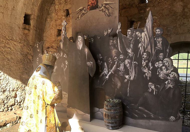Πυρπολητής ο Κωνσταντίνος Γιαμπουδάκης, ένας θαρραλέος επαναστάτης από το Άδελε Ρεθύμνου. Η έκρηξη προκάλεσε εκτός από το θάνατο χριστιανών και εκατοντάδων στρατιωτών του εχθρού. Οι Τούρκοι μόλις συνήλθαν από την έκπληξη και συνειδητοποίησαν το μέγεθος της καταστροφής που υπέστησαν, εξαγριωμένοι ορμούν και σφάζουν όποιον ζωντανό βρίσκουν μπροστά τους, λεηλατούν τα ιερά κειμήλια, καίνε το ναό, ενώ αποκεφαλίζουν σχεδόν όλους τους φονευθέντες επιδεικνύοντάς τους ως τρόπαιο.