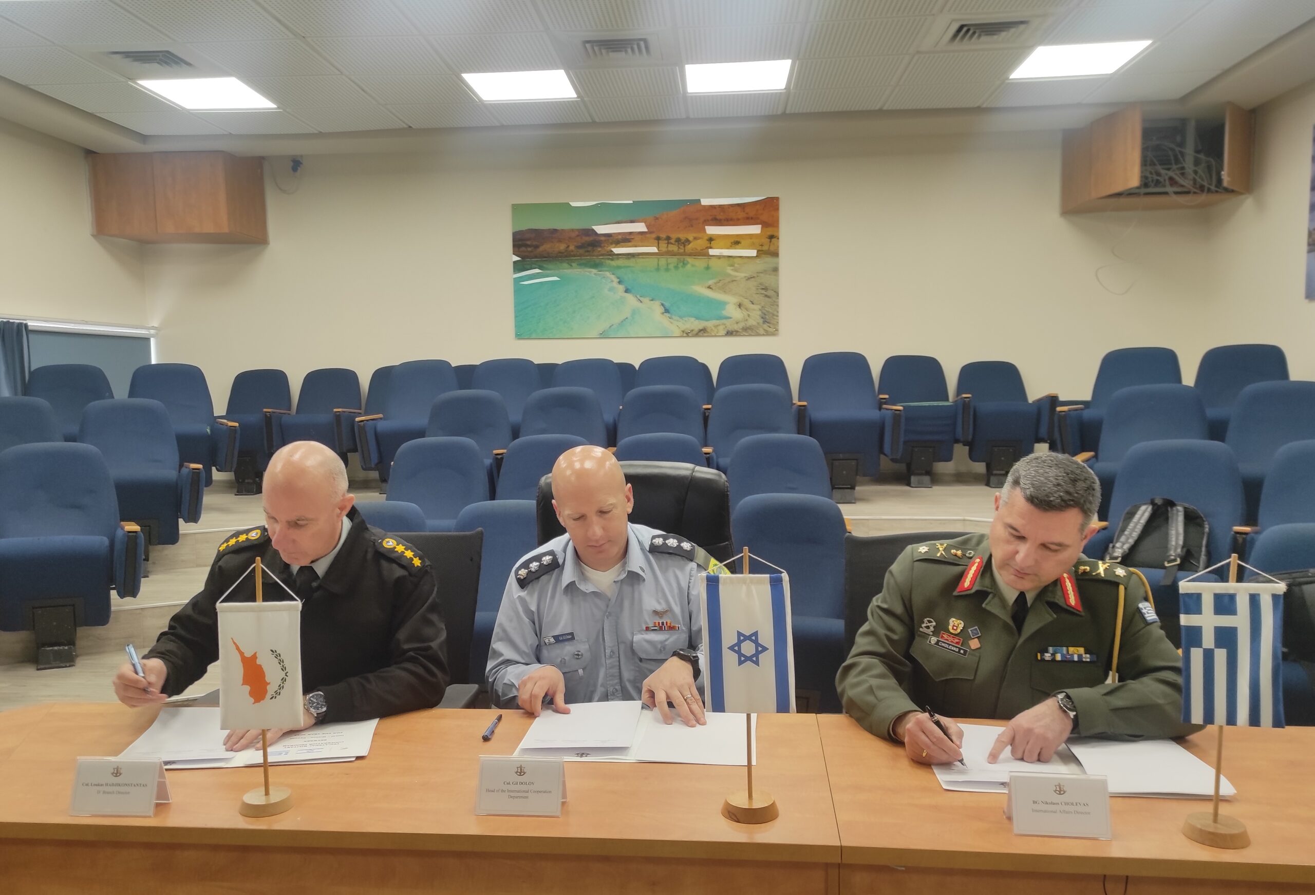 Την Τετάρτη 15 Μαρτίου 2023 υπεγράφη στο Τελ Αβίβ το «Κοινό Σχέδιο Δράσης (ΚΣΔ) Ελλάδας – Κύπρου – Ισραήλ» για το έτος 2023 από τον Διευθυντή της Διεύθυνσης Διεθνών Σχέσεων του ΓΕΕΘΑ Ταξίαρχο Νικόλαο Χολέβα, τον Επικεφαλής του Τμήματος Διεθνών Συνεργασιών του Γενικού Επιτελείου Ενόπλων Δυνάμεων του Ισραήλ Συνταγματάρχη Gil Dolov και τον Διευθυντή του Δ΄ Κλάδου του Γενικού Επιτελείου Εθνικής Φρουράς της Κύπρου Συνταγματάρχη (ΠΖ) Λουκά Χατζηκωσταντά.