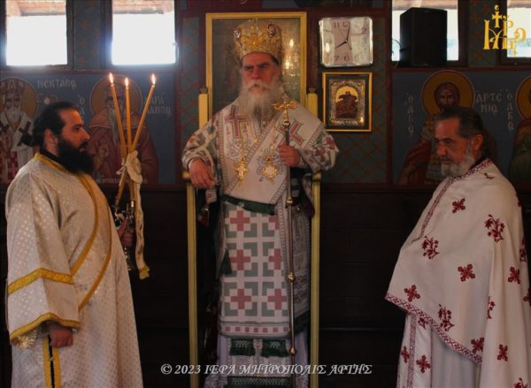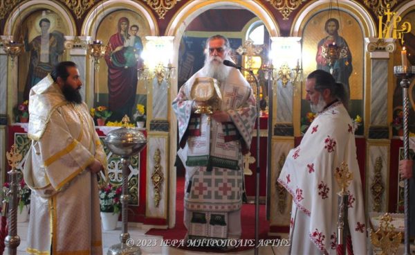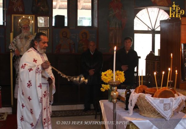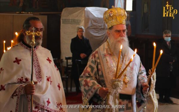 04/03/2023 04/03/2023 Το Σάββατο 4 Μαρτίου 2023, ο Σεβασμιώτατος Μητροπολίτης Άρτης κ. Καλλίνικος λειτούργησε και κήρυξε τον Θείο λόγο, στην πανηγυρίζουσα Ενορία Αγίων Θεοδώρων Αμπελίων Παλαιοκάτουνου (Αβαρίτσα) Άρτης. Ο Σεβασμιώτατος στο Κήρυγμά του, τόνισε, ότι είναι “πηγή ζωής ο Χριστός και όχι τα υλικά αγαθά”.