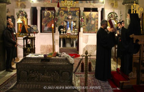 Στον Γ΄ Κατανυκτικό Εσπερινό που τελέστηκε στον Ιερό Ναό της Αγίας Θεοδώρας της πόλεως Άρτης χοροστάτησε ο Σεβασμιώτατος Μητροπολίτης Άρτης κ. Καλλίνικος την Κυριακή 12 Μαρτίου 2023.