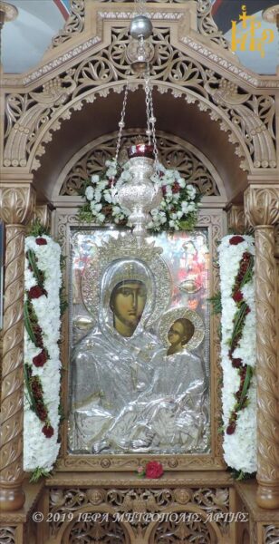 Την Κυριακή 27 Οκωβρίου 2019, το απόγευμα, στον Ενοριακό Ιερό Ναό του Αγίου Θεράποντος, στους Αγίους Αναργύρους Άρτης, ετελέσθη το Μυστήριο του Ιερού Ευχελαίου, προεξάρχοντος του Σεβασμιωτάτου Μητροπολίτου Άρτης κ. Καλλινίκου, στο πλαίσιο των Λατρευτικών Εκδηλώσεων, εις τιμήν της Παναγίας της Εσφαγμένης, αντίγραφο της οποίας φυλάσσεται στον εν λόγω Ιερό Ναό.