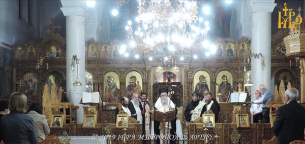 Ο Σεβασμιώτατος ευχήθηκε στους πιστούς, που συμμετείχαν στο Ιερό Ευχέλαιο, η Χάρις της Παναγίας της Εσφαγμένης, να χαρίζει υγεία ψυχική και σωματική.