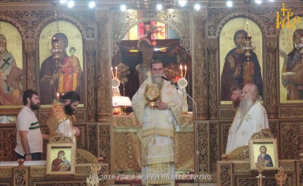 Την Κυριακή 27 Οκτωβρίου 2019, το πρωΐ, στον Ενοριακό Ιερό Ναό του Αγίου Θεράποντος, στους Αγίους Αναργύρους Άρτης, λειτούργησε ο Σεβασμιώτατος Μητροπολίτης Άρτης κ. Καλλίνικος, επί τη Πανηγύρει της Παναγίας της Εσφαγμένης, αντίγραφο της οποίας φυλάσσεται στον εν λόγω Ναό.